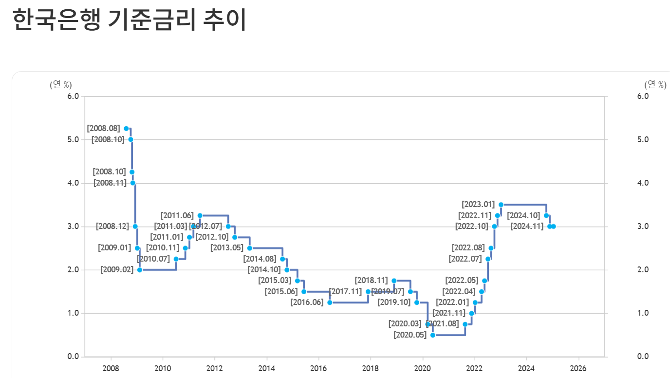한국은행 기준금리 추이(https://buly.kr/7x4HbzE)