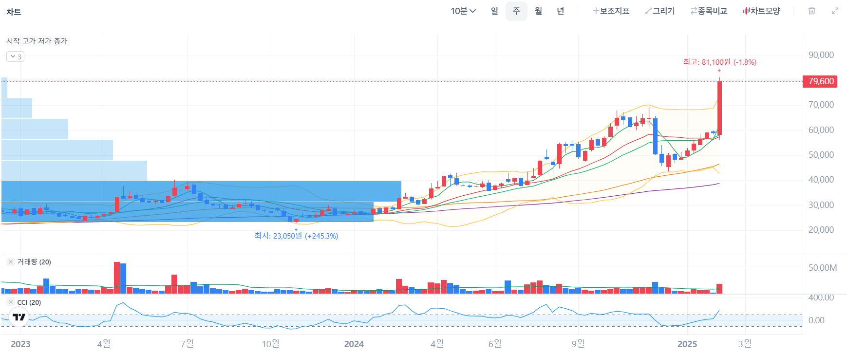 2024년 2월 7일 기준, 현대로템의 주가는 7만 9천 원을 기록하며 상승세를 보이고 있습니다. 실적 호조 및 긍정적인 전망을 바탕으로 향후 주가가 9만 원 이상으로 상승할 가능성이 크며, 글로벌 방산 시장 내 점유율 확대가 지속될 경우 10만 원 돌파도 기대할 수 있습니다.